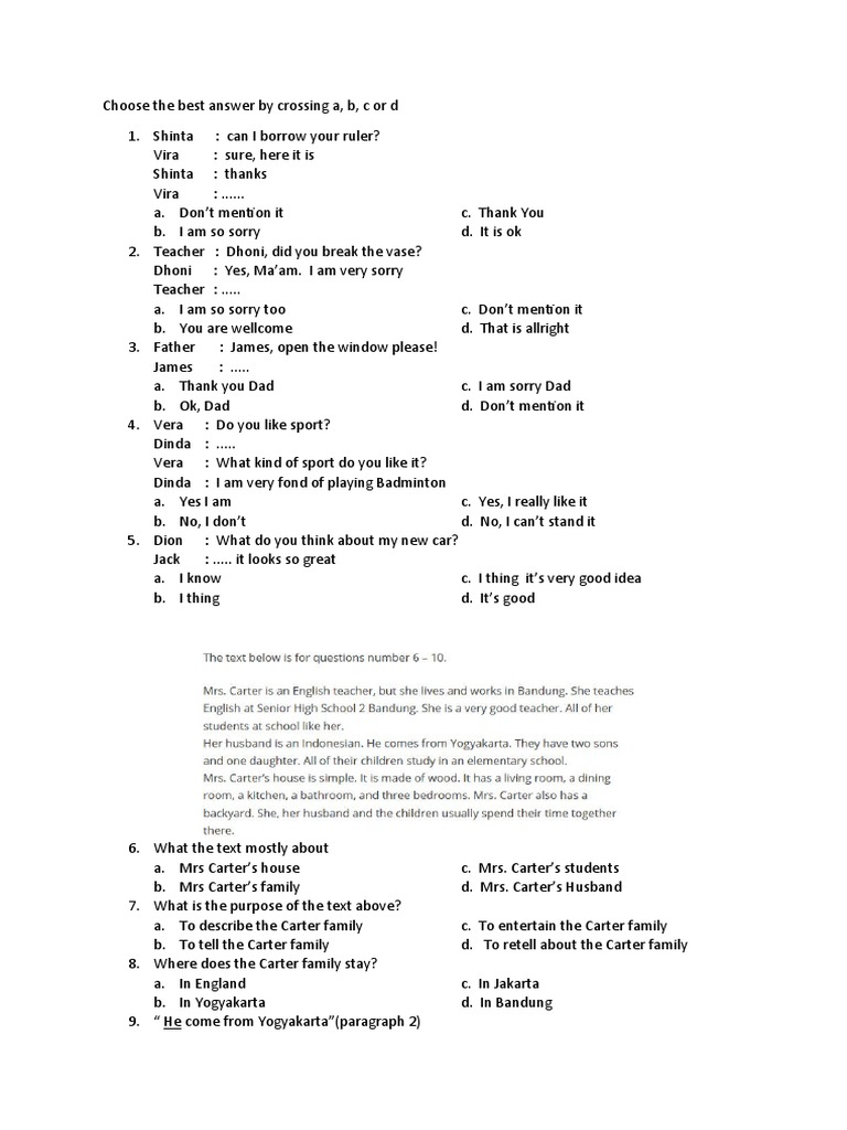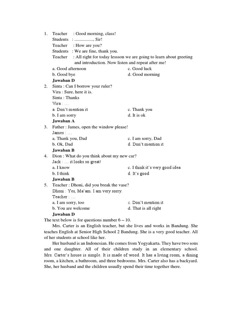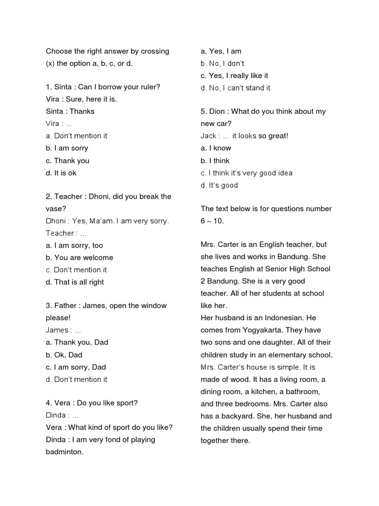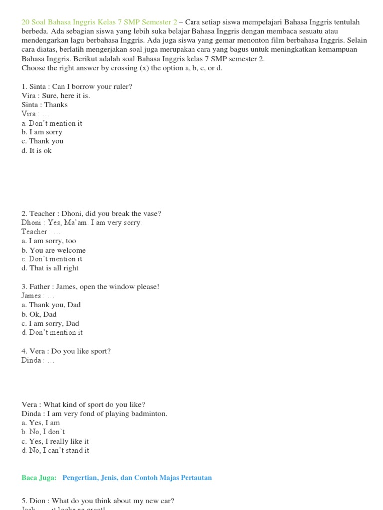 20 Soal Bahasa Inggris Kelas 7 Smp Semester 2